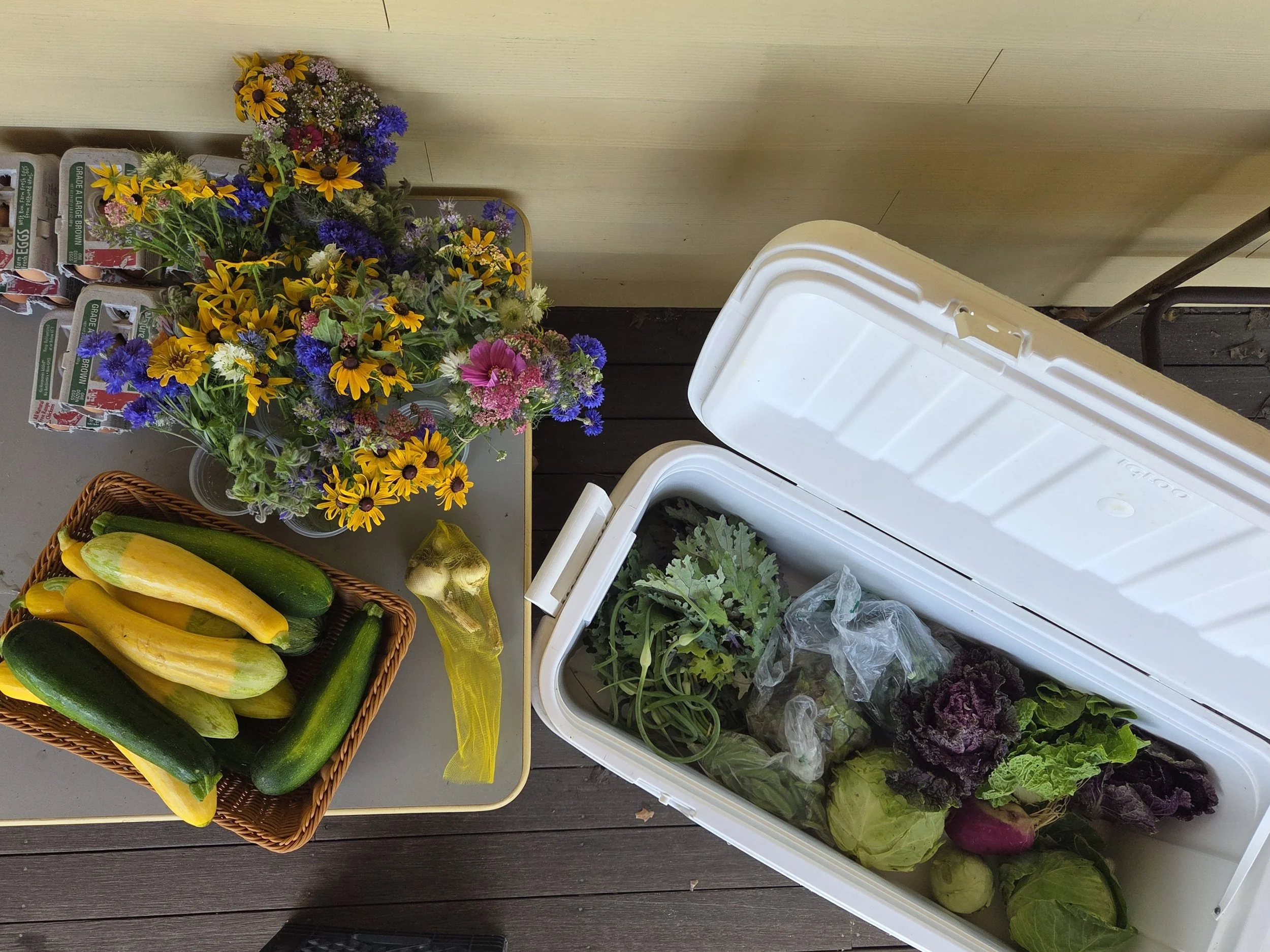 • Facilitate the Grow-A-Row program where community members can share extra garden bounty to share tables, dropping off their produce to us for processing.